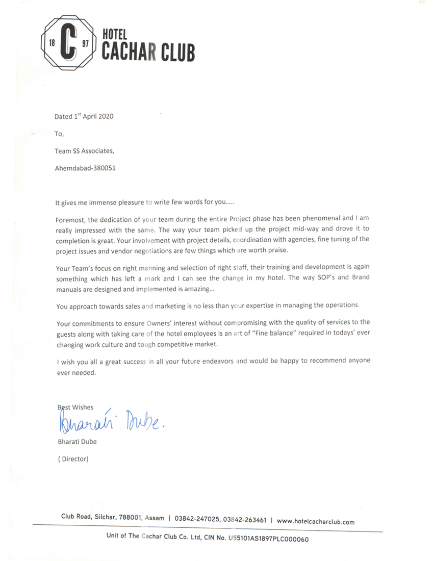 Hospitality Consulting For Hotel Cachar Club, Silchar