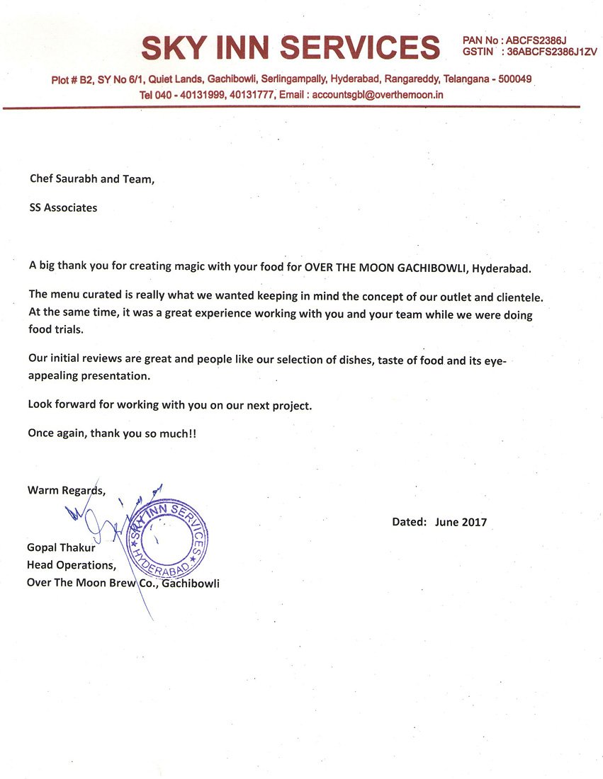 Food Designing & Menu Planning for OTM, Gachi Bowli